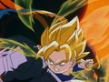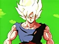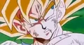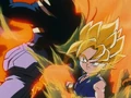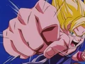 Through a crystal globe, Goku watches the fight between Super Saiyan 3 Gotenks and Super Buu with much anticipation, amazed that the two boys who, alone, could only access the Super Saiyan state were able to achieve Super Saiyan 3 so quickly when fused. As Gotenks is about to finish Super Buu after a lengthy battle, he reverts to his base form and quickly defuses. Gohan (after having his hidden power released) then arrives, effortlessly thrashing Buu with his newfound powers, but Super Buu escapes by self-destructing until Goten and Trunks can fuse again an hour later, and he then absorbs Gotenks and Piccolo, gaining the upper hand. Vegito, the result of the Potara Fusion between Goku and Vegeta
