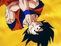 After a long battle, Vegeta is eventually defeated by Goku's Kaio-ken and Spirit Bomb techniques, and the timely intervention of his remaining companions Krillin, Gohan and Yajirobe.[131] However Goku had been brutally beaten to near death, with his legs getting crushed and broken by Vegeta in his Great Ape form. After the fight, Krillin attempts to take Vegeta's life using Yajirobe's katana, but is stopped by Goku, who convinces him to spare his life to give him a second chance at changing his evil ways and hopes to have a rematch one day.[132]