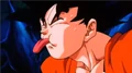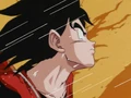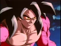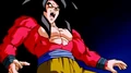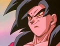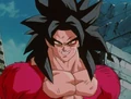 This form is achieved by Goku after achieving the Golden Great Ape state and being calmed down by Pan. The overwhelming power of this transformation is apparently great enough to overcome the Black Star Dragon Balls' power making Goku's transformation into a child by Red Shenron. The spell is only dispersed during the transformation, however. In addition to him being turned back into an adult temporarily, Goku's overall appearance changes yet again. His tail is easily visible, the hair is longer than when in his normal state (not nearly as long as a Super Saiyan 3, though), his eyes become lined (much like Vegeta's did when he was a Majin in the Majin Buu Saga), his eye color is now golden yellow, and red fur covers almost all of his body from head to toe. His clothes change from his childhood garb, leaving him only dressed below the waist (excluding his armbands). As a Super Saiyan 4, Goku is able to easily surpass all but the most powerful enemies in the final parts of Dragon Ball GT. But at the end of the last episode of Dragon Ball GT, his tail disappears again, and it is unknown if he could ever transform to this state from then on. Other than the fusion with Vegeta (SS4 Gogeta), this is Goku's most powerful transformation.
