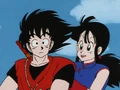After Goku defeats Piccolo Jr., he travels with Chi-Chi to the Ox-King's Village to prepare for their wedding.[116] But fire erupts at the castle, trapping the Ox-King inside the flames. Goku and Chi-chi travel to find the Bancho Fan that Master Roshi once threw away in order to put out the fire.[117] When they find it, they are forced to fight Annin, a guardian of the border between the living world and the Other World. Goku defeats Annin and returns with the fan, which successfully extinguishes the fire. Goku and Chi-chi get married, concluding the original Dragon Ball series.[118]