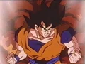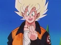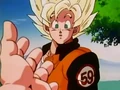 Goku as a False Super Saiyan ready to attack Lord Slug