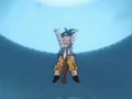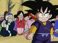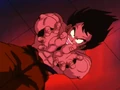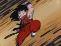 In the tournament he is put up against a Gira named Giran in the quarterfinals. Goku struggles with the beast when he is trapped in Giran's Merry-Go-Round Gum, but his tail grows back causing him to break free and win the match, with Giran forfeiting from being scared of the young boy's power.[56] In the semifinals he is put up against a warrior named Nam. Goku and Nam take the battle into the air, and each is almost knocked of the ring. Just before Goku is knocked out by Nam's Cross Arm Dive, Goku dodges and kicks him out of the ring.[57] In the final round Goku battles with defending Champion Jackie Chun (really Master Roshi in disguise).[58] During the battle, Goku turns back into a Great Ape and starts destroying the stadium. Jackie Chun who cannot leave the arena because they are still fighting destroys the Moon to revert Goku to his normal form.[59] The two continue their match, both losing their energy at a rapid rate. Goku ends up losing the match, and learns that he should always continue to train because there are always people out there who are more powerful.[60]