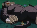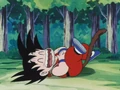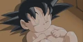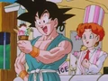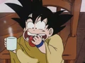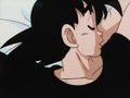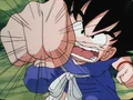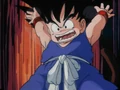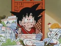 Even in combat, Goku is shown to not be invincible, as he has two major weaknesses. The first weakness is his tail; before he conditioned himself prior to the Tien Shinhan Saga, Goku lost all his power when someone grabbed his tail (a trait that all Saiyans share at birth).[24] The second is his unfathomable appetite;[25] not only does he eat at a rate that would be nearly impossible for a normal Human, but if he does not get any food, he becomes too weak to do almost anything. This weakness was never overcome, and almost got him killed against several enemies, like Tambourine and Nuova Shenron.[26] On the flipside, however, Goku's love for food has gotten him out of trouble several times; for example, in the Tournament Saga, when put to sleep by Jackie Chun, Bulma was able to save his match by screaming to him that dinner was ready, to which Goku immediately woke up to break the count.[27]