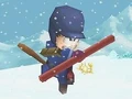 Goku and Bulma travel to the site of the next Dragon Ball which was located at the bottom of the sea. Not having a submarine, Goku and Bulma obtain one from Master Roshi who has Krillin join them. Under the ocean, they find a Pirate Cave, where they are chased by the Red Ribbon Army's strongest operative, General Blue.[71] Goku defeated a Pirate Robot and a giant octopus named Octopapa while Krillin and Bulma were being attacked by Blue. Goku arrives to save them, but Goku is stunned by General Blue's telekinesis. Goku was able to break free when a mouse scares Blue. While the cave began to collapse, Goku quickly grabbed the Dragon Ball and saved his mouse friend and barely escaped with Bulma and Krillin in an old submarine they found. When they arrived back at Kame House, General Blue arrives and uses his telekinesis to tie everybody up and steal the Dragon Balls along with putting a bomb on the island to kill them. Luckily, Launch returned and set Goku free to get rid of the bomb and chase Blue.[72] Goku in Penguin Village