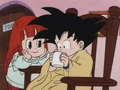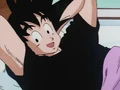 During his childhood, a recurring gag in the series was that Goku was incapable of telling the difference between a man and a woman without physically touching them, which often got him into trouble.[19] The most notable of these occurrences was when he first met Chi-Chi, where she pushed him off of the Flying Nimbus after he patted her genitals with his foot;[20] and in the scene where he removed Bulma's panties while she slept and was horrified to discover that she had no testicles (which was also adapted in the movie Dragon Ball: The Path to Power).[21] He eventually outgrew this once old enough to understand the difference. This trait was also referenced in Dragon Ball Z: Shin Budokai, where Android 18 attempted to fight Goku due to paranoia that Goku would touch her there, with Goku explaining that he knows better now. In addition, during his youth, he seemed to not understand the concept of pornography, as when Bulma discovered her father's secret stash of porn magazines with Goku nearby, Goku thought the girls were too poor to afford clothes, causing Bulma to angrily tell him that they were not poor.[22]