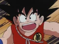 After coming runner up in the World Martial Arts Tournament, Goku is told by Master Roshi that he should go out and see the world, and Goku decides that he will use this opportunity to search of his grandfather's Four-Star Dragon Ball.[61] At the beginning of his quest he helps save Nam's Village by accompanying him to Giran's Village in order to get the river flowing again.[62] After completing this task, he decides to go skinny dipping in an oasis where he gets his Dragon Radar stolen by a homeless kid that sells it to an Antique Store in a nearby town. Once Goku gets there and gets his radar back, he confronts Emperor Pilaf, who is holding the four star Dragon Ball. After chasing Pilaf to his flying fortress, Goku receives the ball finding out that it is fake.[63] While following the radar's signal he ends up meeting back up with Chi-Chi who had a wedding prepared for them.[64] Goku and Chi-Chi quickly go together back to the Ox-King's Village to find that an organization called the Red Ribbon Army has attacked.[65] Goku and Chi-Chi fight off the troops until they fled. Goku leaves Chi-Chi and the Ox-King in a hurry to go and chase them. He ends up in the Desert where he gets into Pilaf's flying fortress while the Red Ribbon Army was attacking it. After Pilaf's fortress is destroyed, Goku is caught in the explosion and wakes up in a forest where he meets a family of monkeys. After Goku finds the Dragon Ball, he battles Colonel Silver, who destroyed his Flying Nimbus. Goku easily defeats Silver, and knocks him out with his tail.[66] Goku attacks the Muscle Tower