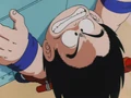 Satisfied with Launch, Roshi then brings Goku and Krillin to his special Training Island to train them.[52] They are put through very strange training that seems like it has nothing to do with martial arts, such as milk delivering to increase stamina, construction work for strength, swimming away from killer sharks, dodging bee stings, all while wearing very heavy Turtle Shells.[53] After the hard work, the two develop into two of the most powerful fighters on Earth. The huge boulder Roshi showed the boys much earlier they could not push, they can now push, much to Roshi's surprise. After eight months of training, Roshi brings them to Papaya Island to compete in the 21st World Martial Arts Tournament to test their training.[54] Upon their arrival, Goku is reunited with his friends Bulma, Yamcha, Oolong and Puar. Goku gets through the elimination rounds easily without even trying (even he is surprised at his remarkable new power) and makes it to the main tournament.[55] Goku vs. Jackie Chun in the final round