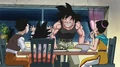 "Alright, I'm on my way, Broly. *stomach growls* What, you need more? I guess it wouldn't hurt to have another bite to eat. I can't fight on a half-empty stomach." — Goku in his brief appearance at the end of the movie.