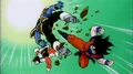 Goku fights the newly-fused Super 17 after reaching the battlefield. With the help of Android 18, vengeful towards Android 17 for Krillin's death, Goku is able to defeat Super 17 with the use of the Super Dragon Fist through the android's stomach and chest. This attack presumably destroys Android 17's Energy Absorption devices. Goku then finishes off the android with a Kamehameha through the wounded Super 17's stomach, causing him to explode.