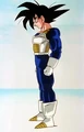 Kakarot was born sometime in Age 737 on Planet Vegeta, during a time of great turmoil.[28] Following a Saiyan custom, Kakarot was sent as a baby to planet Earth, in order to destroy its inhabitants and clear the planet for its future sale.[29] As Earth's inhabitants were thought to be weak, a baby Saiyan was seen as enough for the task, especially after transforming into a Great Ape by Earth's full moon. Kakarot's father, a low-class Saiyan warrior named Bardock, perished in his home planet's destruction shortly after Goku's departure, and his older brother Raditz was nowhere to be seen.[30] It is unknown what happened to Goku's mother.[31] Goku, found alone in the forest