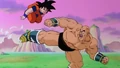 Goku is in a suit to help Chi-Chi with getting Gohan in a school, when he is warned by King Kai about the appearance of the Legendary Super Saiyan. Goku teleports around the galaxy trying to focus on the Legendary Super Saiyan's ki, eventually arriving to New Planet Vegeta. There Goku met several of his friends, including Vegeta, who had been brought there by a Saiyan called Paragus who wanted Vegeta to be the king of a new Saiyan planet. However, they eventually discover that Paragus' son, Broly, is in fact the Legendary Super Saiyan. Broly breaks free of his father's control and attacks Goku and the Z Fighters, who are no match for him. It is revealed that an asteroid was approaching the planet, and that Paragus had tricked Vegeta to kill him, in order to avenge his grudge against Vegeta's father. All the beaten fighters give their energy to Goku, who is able to punch and defeat Broly. Goku escapes with his friends using Instant Transmission, just before the asteroid destroys the planet.