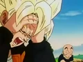 After ten days have passed, the Z Fighters head to the Cell Games. After the supposed strongest person on Earth, Mr. Satan, is easily defeated, Goku offers to be the first Z Fighter to fight Cell, believing that he is no match for the villain in order to truly test Cell's abilities.[161] Goku finds himself almost equally matched but still at a disadvantage against a heavily suppressed Perfect Cell in every way, and cannot seem to gain the upper hand after many attempts. Even after trying the Instant Kamehameha (a combination of the Instant Transmission and Kamehameha), which destroys Perfect Cell's upper half, he watches in horror as the android regenerates easily, thanks to Piccolo's cells in his body.[162] After getting tired and worn out, Goku decides to give up and leave the battle to Gohan, whom he is convinced has the hidden power necessary to defeat Cell.[163] Gohan then states that Goku had been holding back, only to learn he had not, leading to the conclusion that Gohan may be stronger than Goku, who was fighting at full power.[164] Gohan then powers up to a point where his energy eclipses even Goku's, and fights with Cell, but halfheartedly. After Gohan tells Cell that when he gets angry he gets much stronger, Cell starts to get curious and tries to force Gohan's inner powers out of him by making his children, the Cell Jrs, attack Gohan's friends and his father. All the Z fighters cannot beat the Cell Jrs, including Goku, who was worn out from his battle with Cell. After Android 16 attempted self destruct on Cell, who blasted him, 16 asks Mr. Satan to bring him (his remaining Android head) to Gohan, and he then tries to convince Gohan that fighting is sometimes needed. When Cell destroys Android 16's head, this triggers a change in Gohan, forcing him to ascend to Super Saiyan 2,[165] a form in which he greatly surpasses Perfect Cell, even after the behemoth decides to unleash his earth-shattering Full Power and a further powered up Power Weighted form, which Gohan easily overcomes to the point of forcing him to regurgitate Android 18 because of the damage he has sustained.[166] Goku says farewell to his family and friends before going to Other World